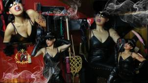 Indosso Leggins e stivali in pelle con Tacchi alti e sono in casa con il mio schiavo che deve pulire alcune Scarpe, lui e in ginocchio per terra porgendomi le Scaroe pulite e che io controllo, con la mia frusta tocco il suo Corpo per fargli capire cosa succede se le trovo ancora sporche, mentre le controllo noto delle macchie della sua lurida lingua sulle mie scarpe, che schifo!! Mi siedo sulla sua schiena tipo cavallo e chi spiego che deve usare solo lo straccio.. serve qualche frustata sul culo e voglio anche che striscia come un Verme seguendo i miei Stivali leccando poi i miei Tacchi, lo so che adesso è eccitato e vuole leccare ancora i miei stivali, ma gli metto una bella GagBall così almeno potrà avvicinarsi ai miei stivali senza poterli Leccare, molto divertente farlo penare questo schifoso che comincia a segarsi il piccolo Cazzo, ve sulla vediamo come fa a strusciare il piccolo Cazzo sulla Pelle dei miei Stivali, voglio che questo Verme Sborra sui miei Stivali, deve essere munto come si deve, decido di fare un conto alla rovescia dove allo zero deve svuotare tutto suggli Stivali ma ... è un incapace di Merda non ce la fa...